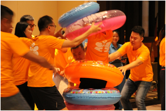 下午3点,公司领导及全体员工在希尔顿酒店进行团队拓展活动,大家分小组积极踊跃地进行比赛。