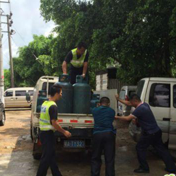 据海口市交通港航综合执法支队十四中队长吕琼兴介绍,他们接到投诉后立即赶到现场,在琼山大道琼庄村段的路面上,当场拦下两辆运输燃气瓶车辆,经查两车出示不了运输许可证,属于非法营运危险品。这两辆车运输的燃气瓶是美兰区附近收集的,准备拉到万宁市充装后再运回海口零售。同时,他们还发现这两辆车的燃气瓶是从旁边一家店运出来的,店里还存放上百个燃气瓶,交通执法人员遂向美兰区城管部门反映。